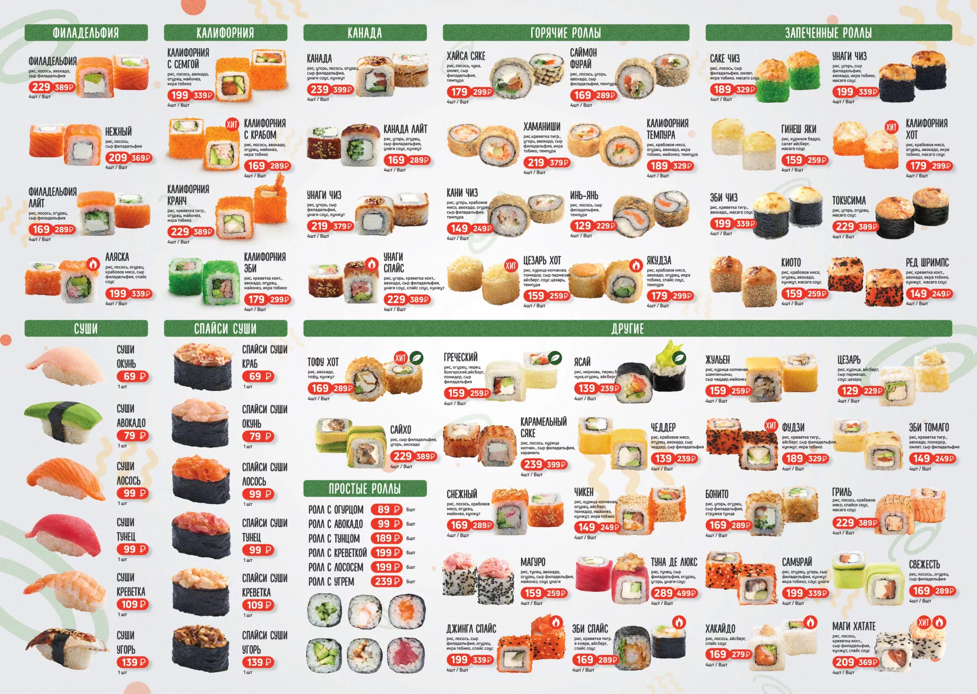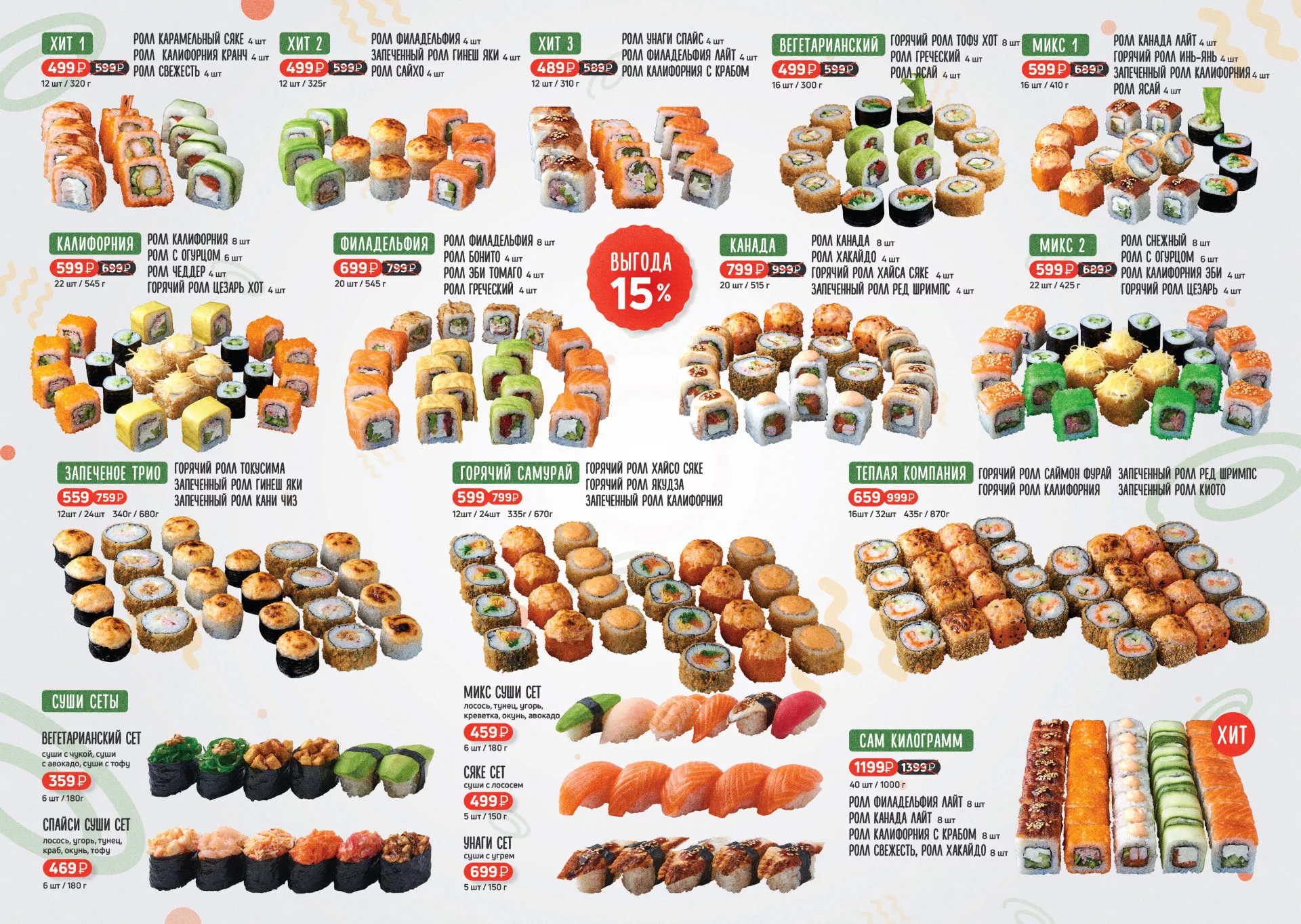 Оформление меню суши-бара «Roll Wok Club» в Вихоревке