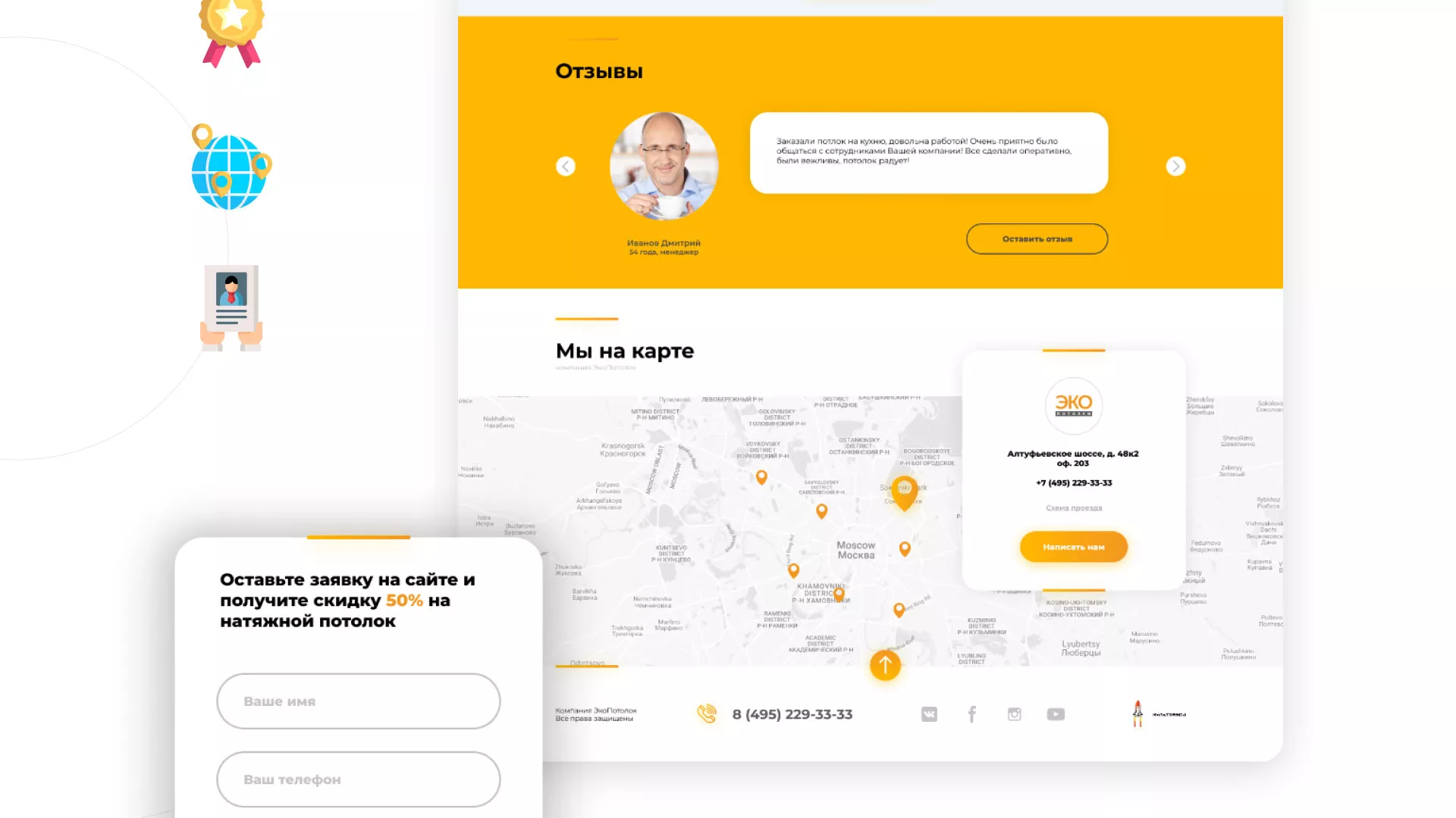 Вам нужна разработка сайта по натяжным потолкам в Вихоревке? Специалисты компании «Мультзавод» готовы помочь! Мы предлагаем большой выбор уже готовых вариантов, а также можем создать и что-нибудь новое!